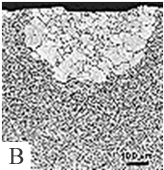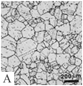 另一方面,圖B顯示了雙相晶粒尺寸條件的極端隔離的示例。沿該低碳鋼試樣的表面出現晶粒長大。