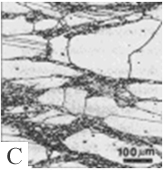 雙工狀態的另一種隔離形式是所謂的“項鏈”類型,如圖C所示。這是由高度合金化的不銹鋼制成的,其中細的重結晶晶粒圍繞著較大的非重結晶晶粒。