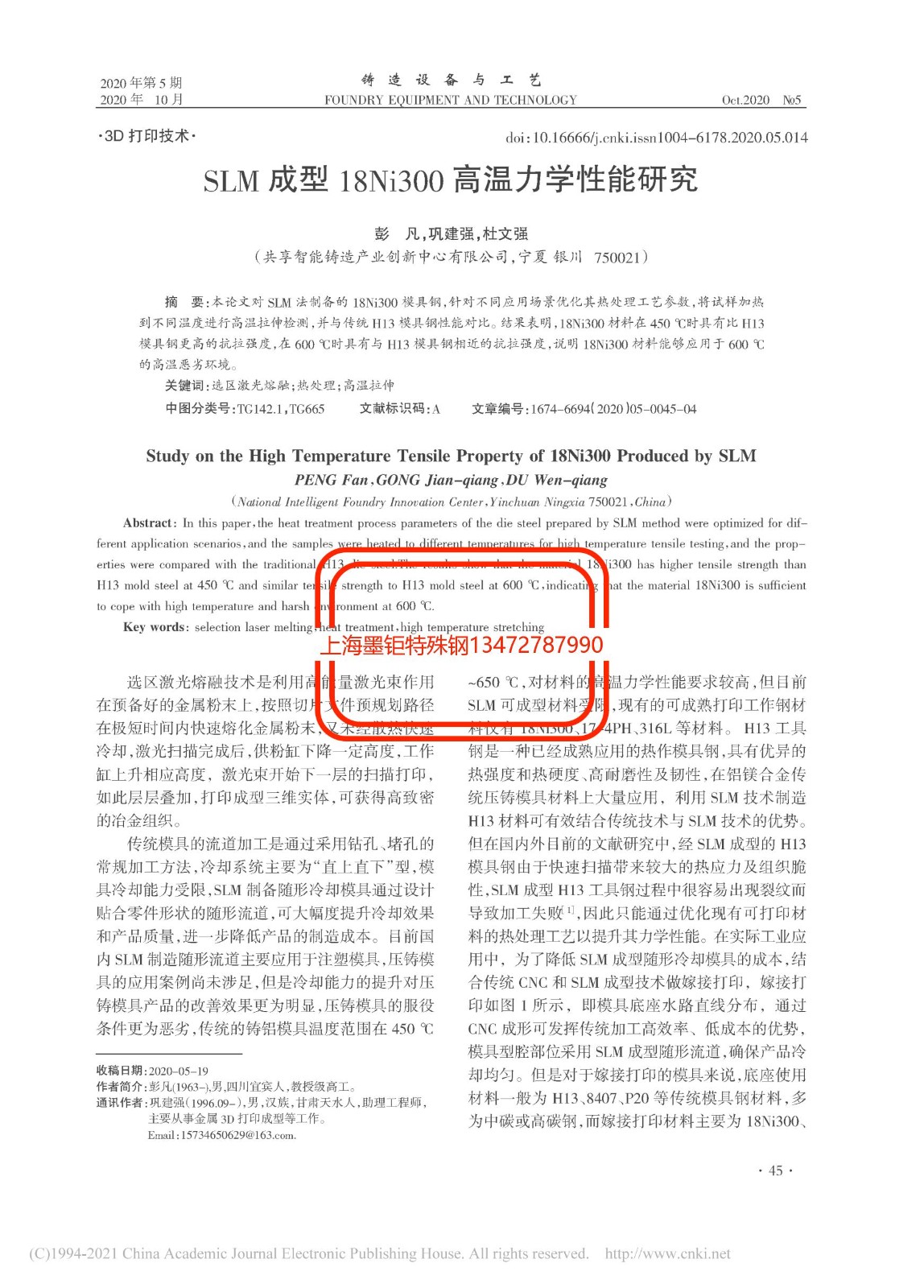 > SLN成型18NI300力學(xué)性能介紹2021-10-13